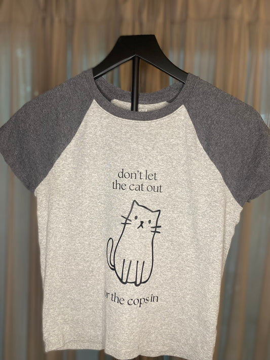 Don't Let Cat Out | T-Shirt | Hollister | Gray | Women's Large
